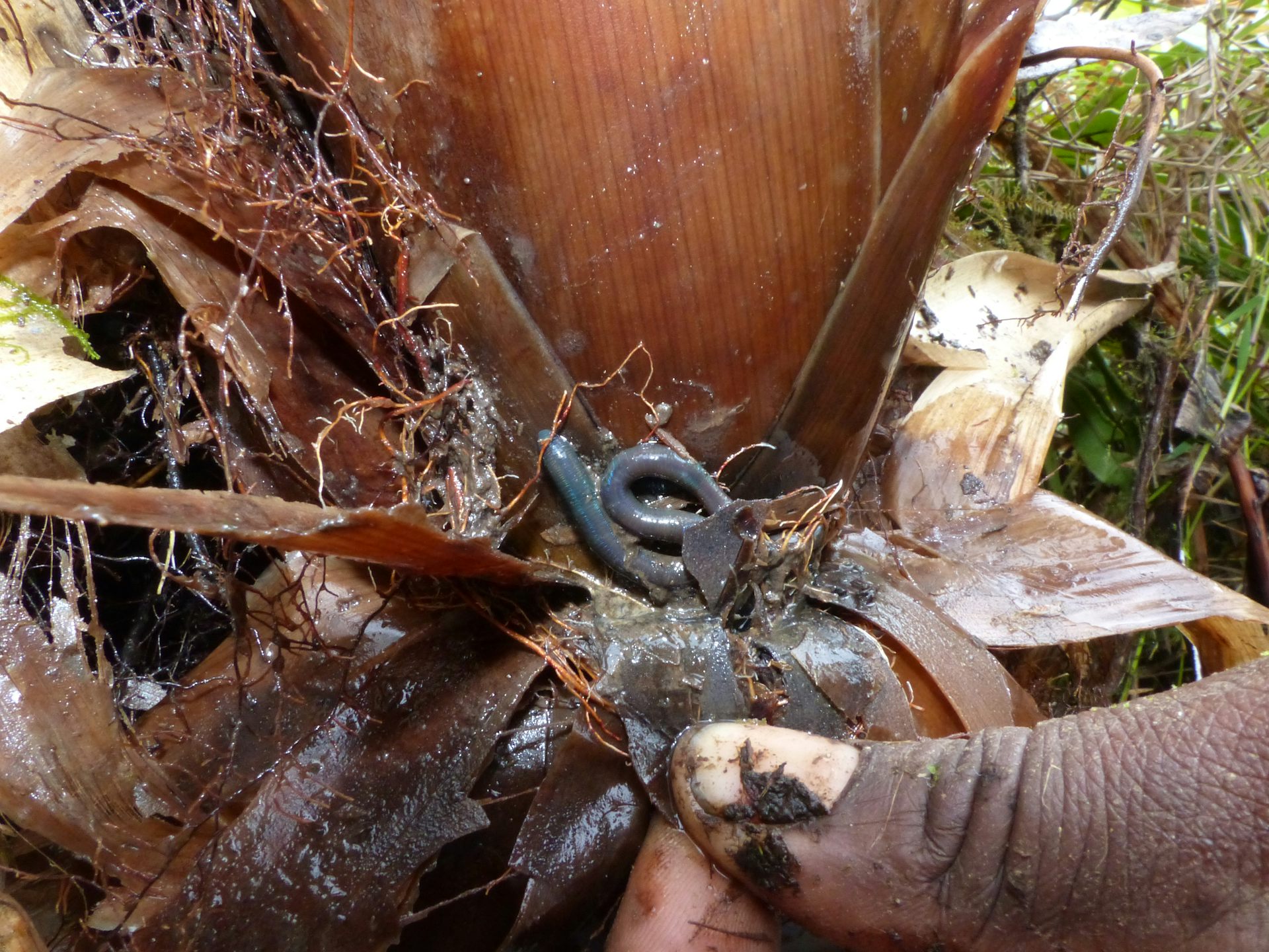 Des vers de terre ont déjà été signalés dans des Broméliacées notamment au Mexique et en Guadeloupe mais, pour le moment ce sont surtout des travaux de taxonomie (description des espèces) qui mentionnent leur présence dans ces habitats arboricoles. Aucun travail sur l’écologie des vers de Broméliacées n’a été mené, ainsi nous ignorons si les vers sont capables d’y vivre en permanence ou si leur présence y est temporaire. La présence de vers de terre dans cet habitat est probablement beaucoup plus répandue qu’actuellement documentée.