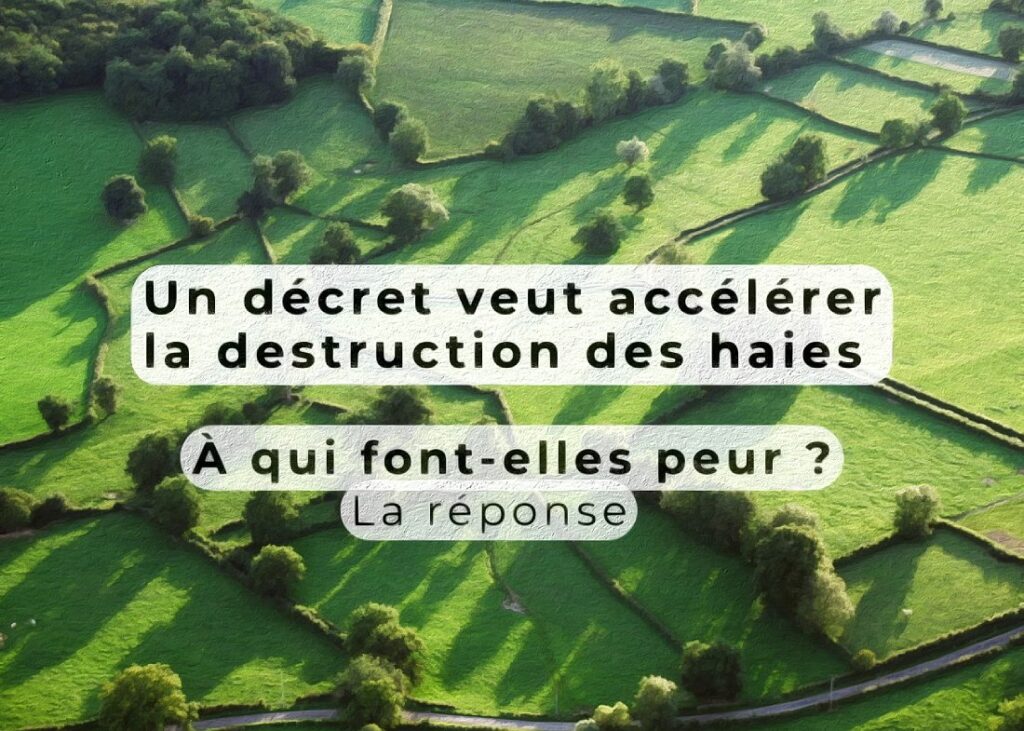 La destruction des haies est au programme du gouvernement. Un projet de décret est sur la table ; une consultation publique est ouverte jusqu’au 16 décembre, pour une entrée en vigueur le 30 mars 2026. Lien. Pour se justifier, le gouvernement promet que chaque mètre de haie arrachée sera replanté.