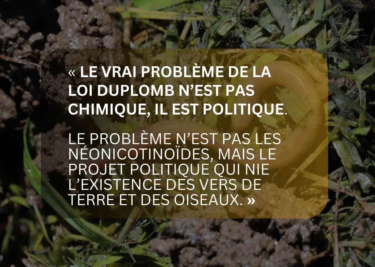 Le vrai problème de la loi Duplomb n’est pas chimique, il est politique ! Car cette loi nie l’existence des vers de terre et des oiseaux